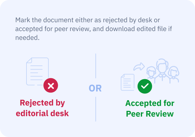 Mark the document either as rejected by desk or accepted for peer review, and download edited file if needed.