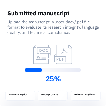 Upload the manuscript in .doc, .docx or .pdf format and Preflight will evaluate research integrity, language quality & technical compliance