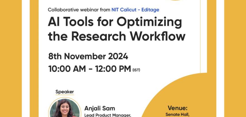 Editage, the flagship brand of Cactus Communications (CACTUS), in collaboration with National Institution of Technology Calicut (NIT-C), successfully conducted an insightful workshop on “AI Tools for Optimizing the Research Workflow.” The event garnered participation from over 150 students and researchers, emphasizing the potential of AI in the research process. The workshop was conducted on 8th […]