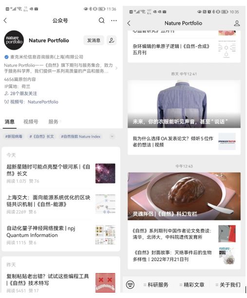 Figure 1: Nature’s official WeChat account