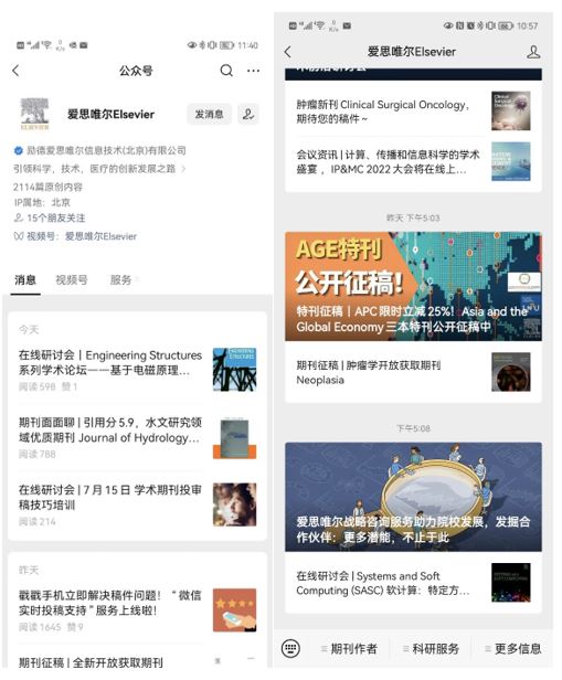 Figure 3: Elsevier’s official WeChat account