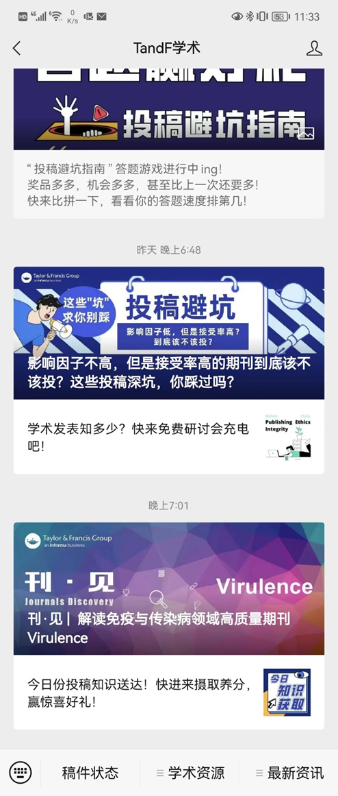 Figure 2: Taylor & Francis’ official WeChat account