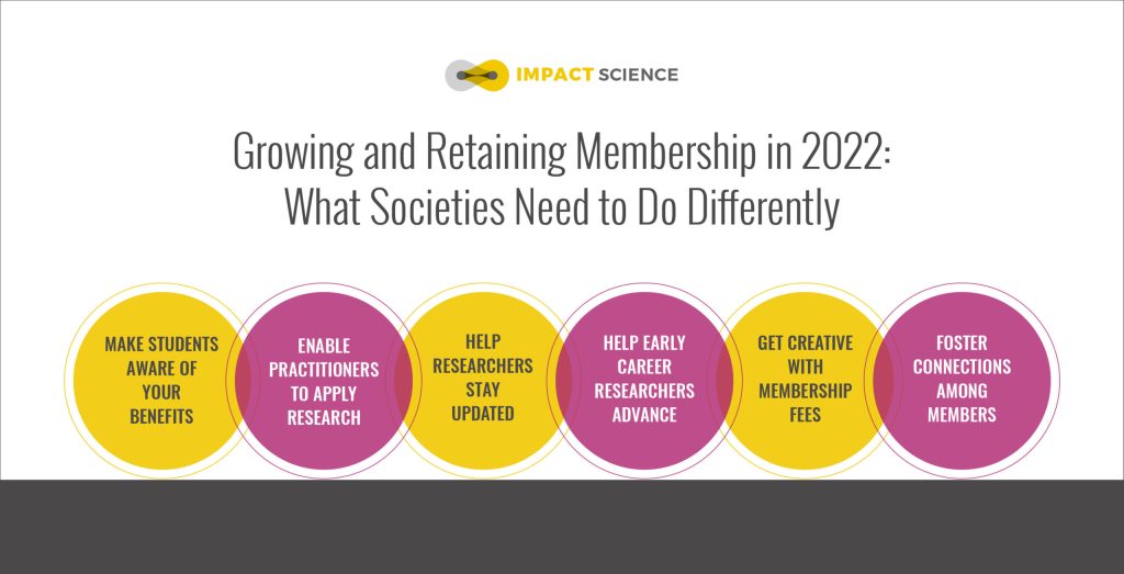 Academic societies have good reasons to fear declining membership in 2022, for various reasons such as income loss during lockdowns, lack of interest because of limited networking opportunities, and limited institutional support due to budget cuts. Conventional strategies to increase or retain membership (e.g., bring a friend schemes, loyalty pins) are losing their relevance or appeal in a world where interactions are increasingly going digital. To grow and retain membership, societies need to look at different member segments and meet their needs effectively.