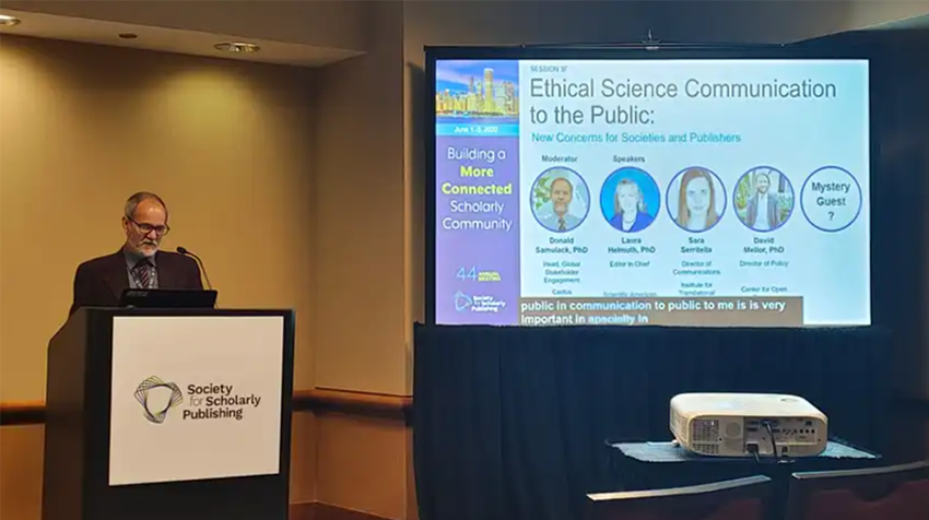 Don Samulack moderated a panel discussion on ethical science communication with Dr. Laura Helmuth (Editor in Chief, Scientific American), Sara Serritella (Director of Communications, Institute for Translational Medicine), and David Mellor (Director of Policy, Center for Open Science). The session saw some very animated discussion.
