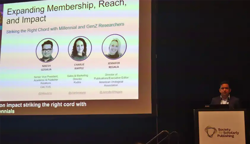Nikesh Gosalia had a great panel discussion with Charlie Rapple (Co-founder, Kudos) and Jennifer Regala (Director of Publications/Executive Editor, American Urological Association) on expanding membership and reach for societies and helping them strike the right chord with Gen Z and millennial researchers (the latter are the most prolific when it comes to publishing papers). This session was largely based on an Impact Science whitepaper on how academic societies and publishers can strike the right chord with early-career researchers.